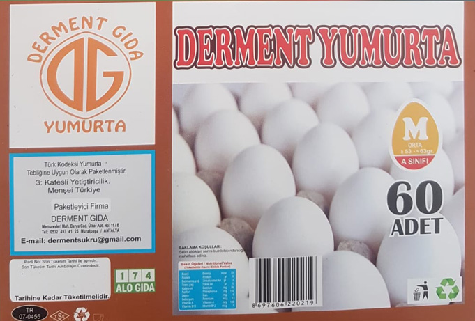 Derment Gıda Yumurta 03/04/2023 tarihinde İl Tarım ve Orman Müdürlüğü’nden işletme onay belgesi alarak faaliyetine toptan ve perakende yumurta satışı ile otel, market, büfe, pastane, cafe, restaurant v.b. işletmelere günlük ve taze kaliteli yumurtaları M, L, XL seçenekleriyle kendi paketleme tesisinde hizmet yapmaktadır.